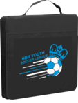 13-1/2” X 13-1/2”  Deluxe polyester stadium cushion with front pock and carry strap, complete with your school or team logo.